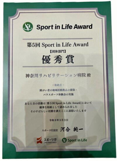当院のパラスポーツ体験会について応募したところ、優秀賞を受賞することができました。2026年3月3日文部科学省にて「sport in lifeアワード」表彰式が開かれ、審査員講評では最後まで大賞候補として協議をしたとのお言葉もいただけました。